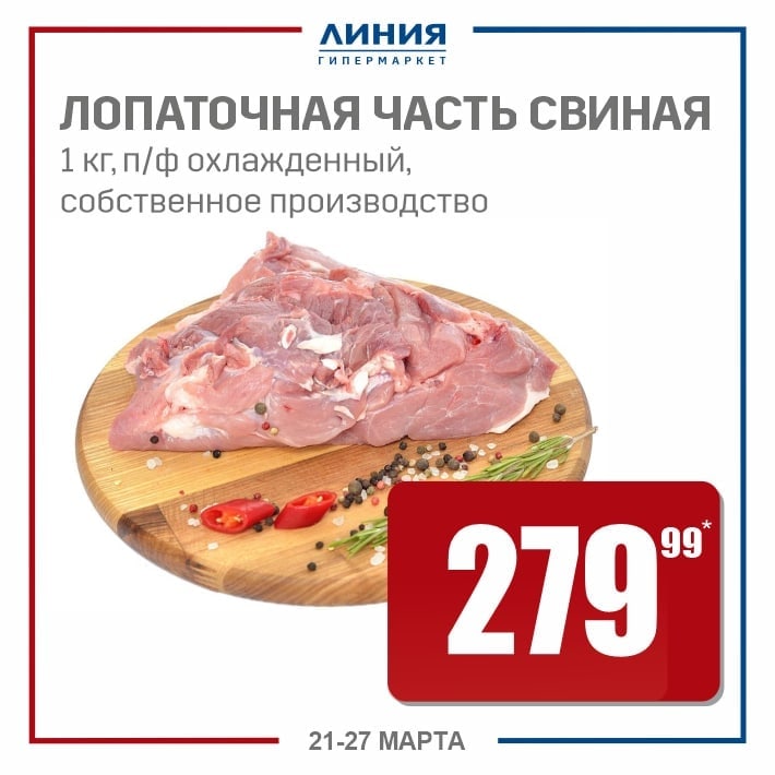 — лопаточная часть свиная, п/ф охлажденный, 1 кг – 279,99;