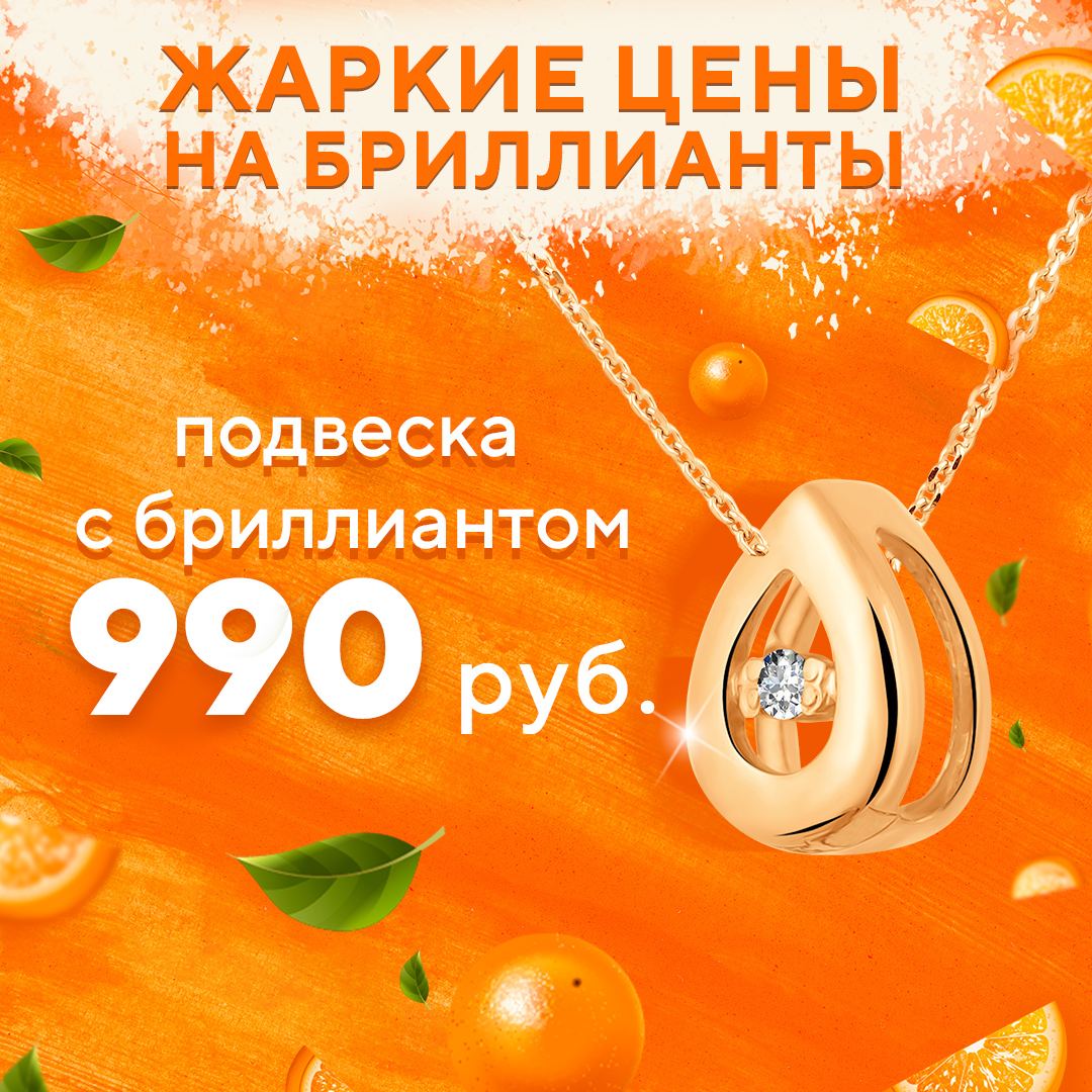Например, стоимость стильной подвески с бриллиантами начинается от 990 рублей!