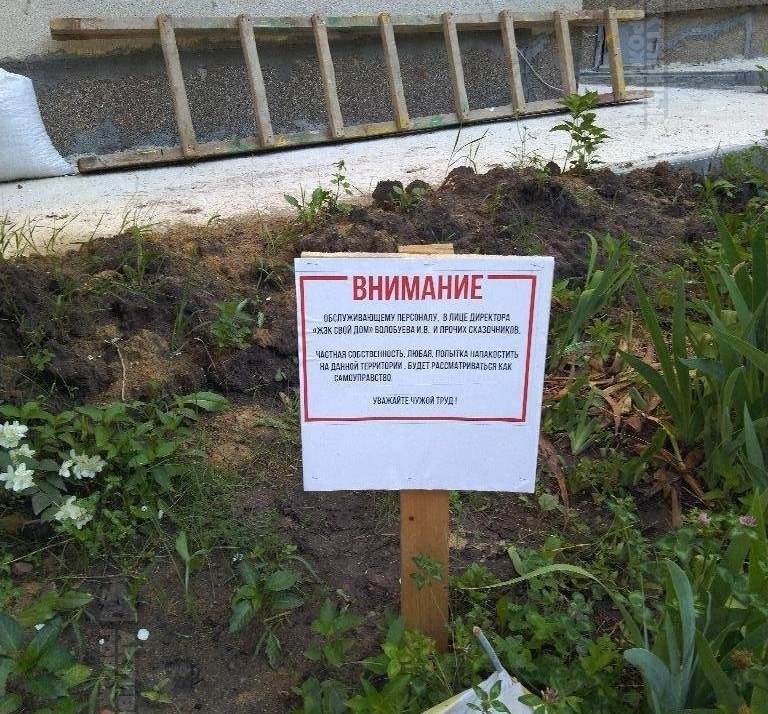 Тогда белгородец поставил табличку с запретом «сказочникам» трогать его травку.