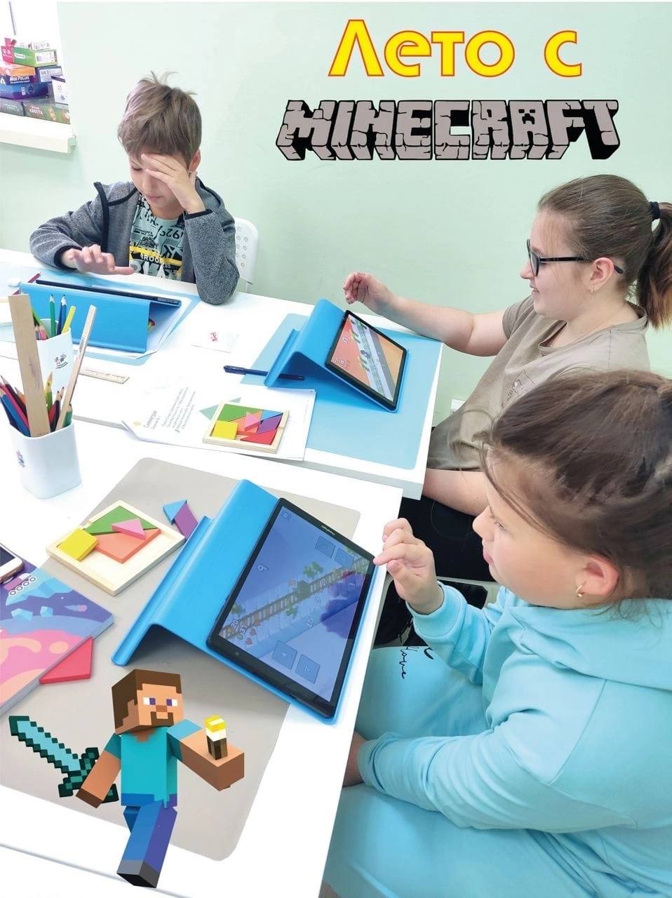 Во время летних каникул в клубе начнётся математический дневной лагерь «Лето с Майнкрафт» — интерактивный квест по мотивам любимой игры 👾
