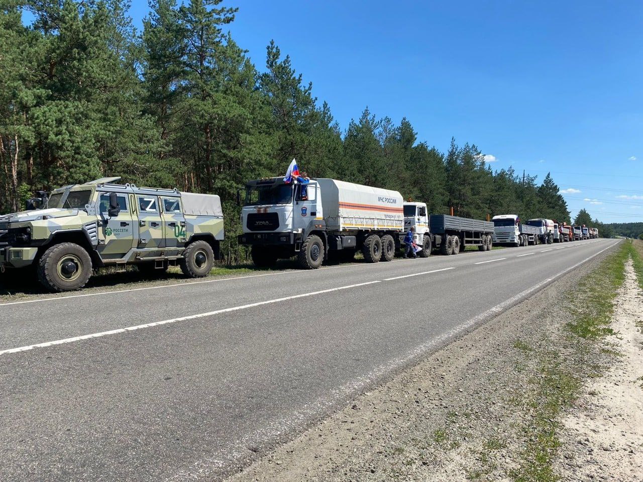 Колонна из 10 автомобилей в сопровождении военной полиции и сотрудников Главного управления МЧС России по Белгородской области доставила 167 тонн гуманитарной помощи