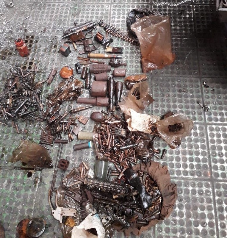 В числе найденного оказались малокалиберный 23-миллиметровый снаряд, две 50-ти миллиметровые минометные мины, восемь гранат различных модификаций, шесть взрывателей и 200 патронов калибра 12,5 миллиметров.