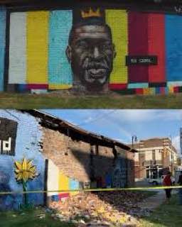 В американском Толедо (штат Огайо) молния разрушила граффити с изображением Джорджа Флойда. Местные чиновники были убиты горем, когда увидели, что произошло с портретом «святого» Флойда.
