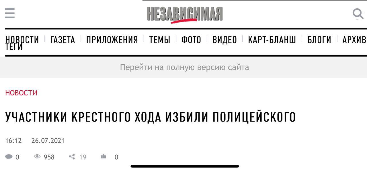 Не без интереса наблюдаем, как ширится и множится список изданий, подхвативших свеженький, с пылу с жару фейк про «лупящих древком от хоругви по спине» полицейского «пьяных участников крестного хода» на территории Никольского монастыря в Старой Ладоге.