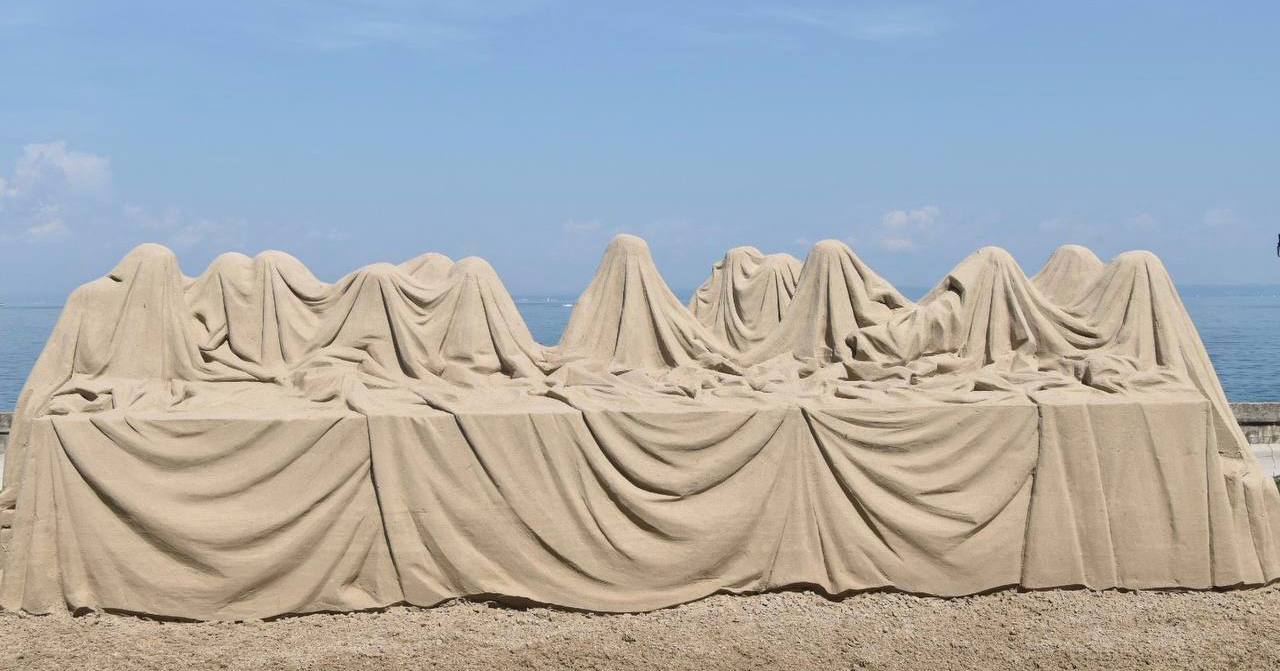 Команда из России в составе скульпторов Ивана Зверева и Константина Евдокимова выполнили из песка хорошо узнаваемую копию «Тайной вечери» Леонардо да Винчи, где фигуры сидящих за столом Иисуса Христа и Его учеников словно накрыты тканью.