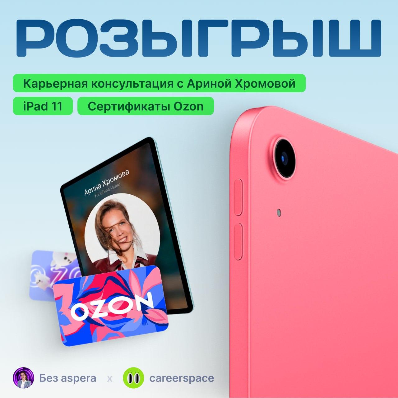 Можно выиграть айпад, личную консультацию по карьере с сооснователем careerspace Ариной Хромовой или сертификаты на крутой шоппинг на Ozon.