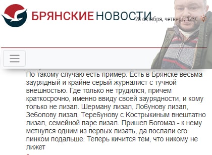 Любопытную загадку опубликовала на страницах сайта Брянские новости aka Брага его редактор Валентина Федосова. Мы без труда догадались, кто этот неназванный герой, тем более, что он повадился воровать контент с нашего канала.