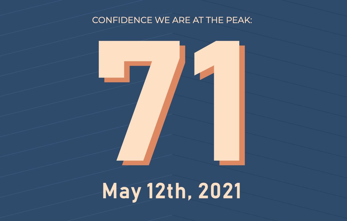 Исходя из приведенного выше соотношения и учитывая, что 3-й халвинг произошел 11 мая 2020 года, мы можем подсчитать, что первая фаза (51%) текущего бычьего цикла продлится около 520 дней (дно было достигнуто 15 декабря 2018 года). Таким образом, 49%, которые, исходя из предыдущих двух циклов, отражали вторую фазу, должны продлиться около 505 дней, что позволит достичь вершины текущего бычьего цикла в начале октября 2021 года! Это означает, что осталось около 180 дней Бычьего цикла!!!