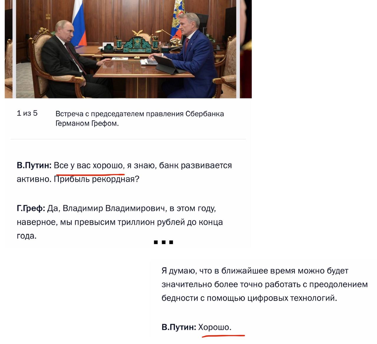 С этого начинается и этим же словом заканчивается релиз встречи Владимира Путина и Германа Грефа на сайте президента.