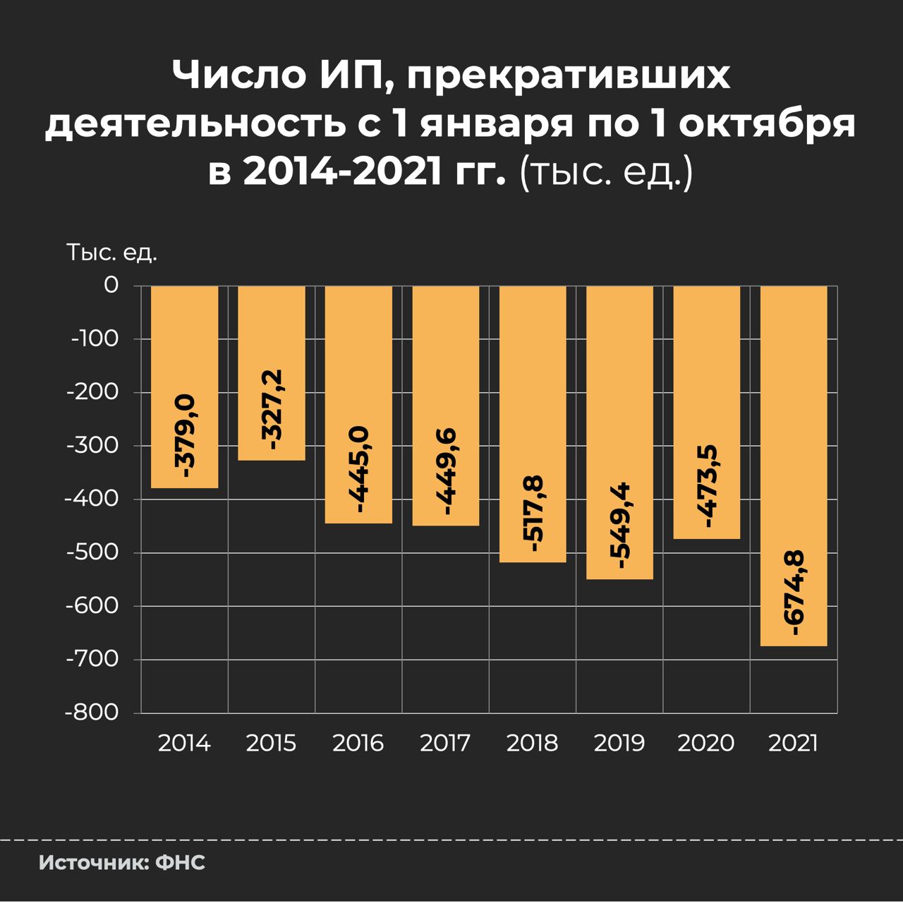 По данным ФНС, с начала этого года по 1 октября прекратили свою деятельность почти 675 тыс. индивидуальных предпринимателей (ИП) – это самый плохой показатель за первые три квартала с 2013 года.