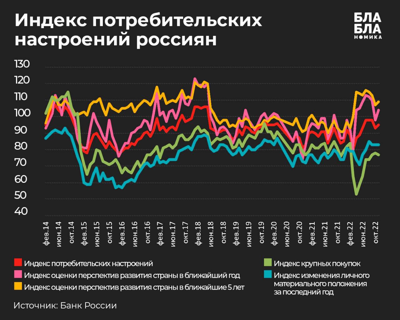По данным опроса Банка России, настроения потребителей остаются на пониженном уровне