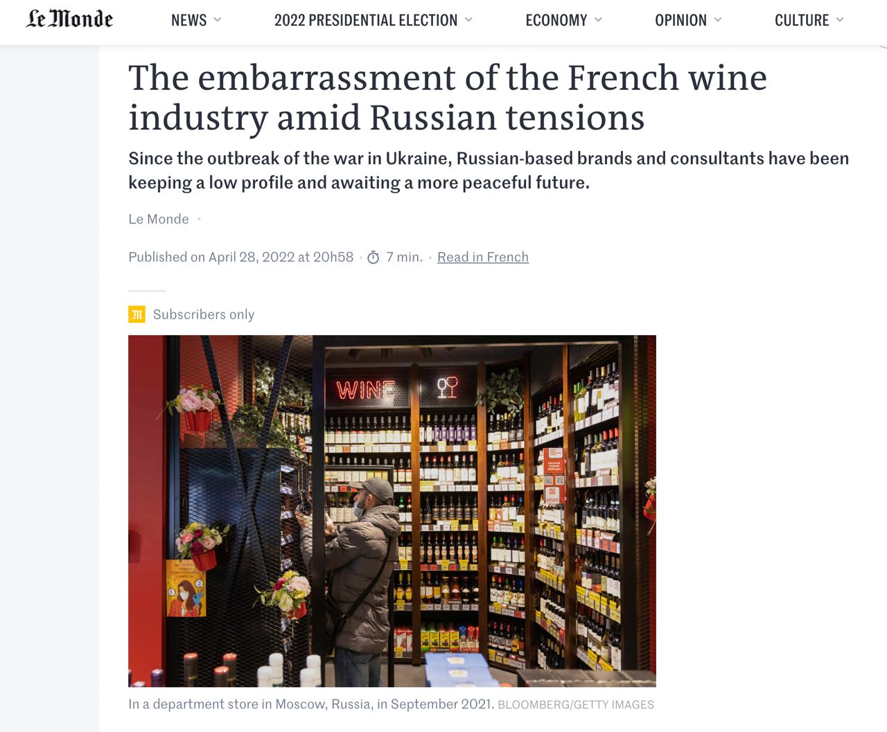 Потеря российского рынка, с учётом роста цен на топливо, удобрения и электроэнергию, ставит некоторых французских виноделов на грань банкротства.