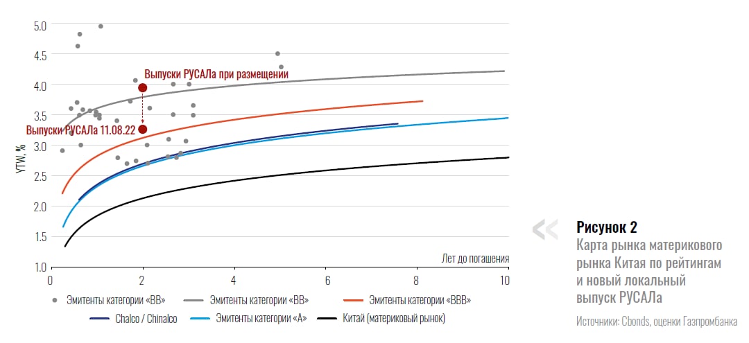 РУСАЛ стал первой (и на момент подготовки материала — единственной) компанией, разместившей облигации в юанях на локальной инфраструктуре Московской биржи. Переориентация торговых потоков в Китай и переход на расчеты с торговыми партнерами в валюты «дружественных» юрисдикций (в первую очередь юань) будут способствовать насыщению локального рынка ликвидностью.