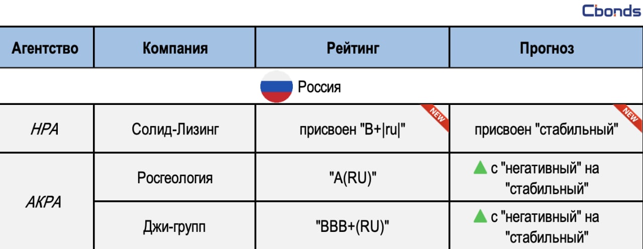 🗂Присвоение / Изменение рейтинга или прогнозов в странах СНГ за 29 сентября