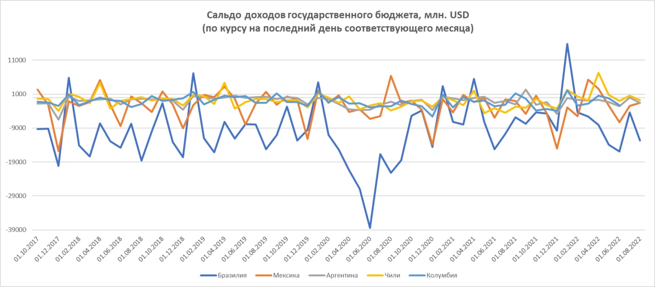 📊По итогам 8 месяцев 2022 года лишь одна из пяти крупнейших экономик Латинской Америки демонстрирует профицит государственного бюджета