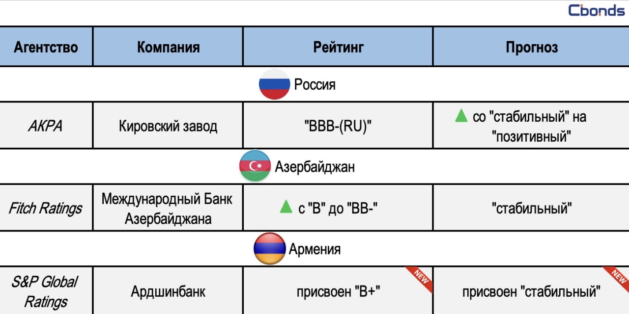 🗂Присвоение / Изменение рейтинга или прогнозов в странах СНГ за 26 октября