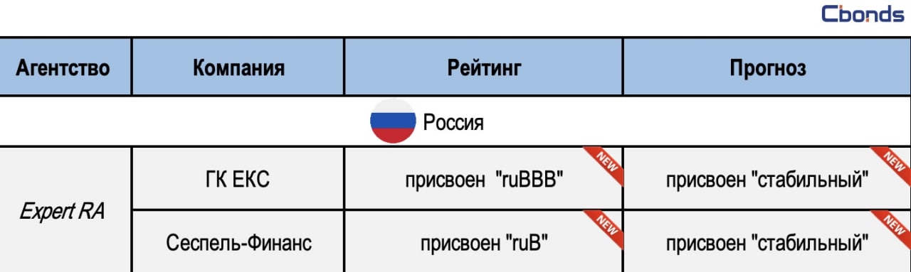 🗂Присвоение / Изменение рейтинга или прогнозов в странах СНГ за 27 октября