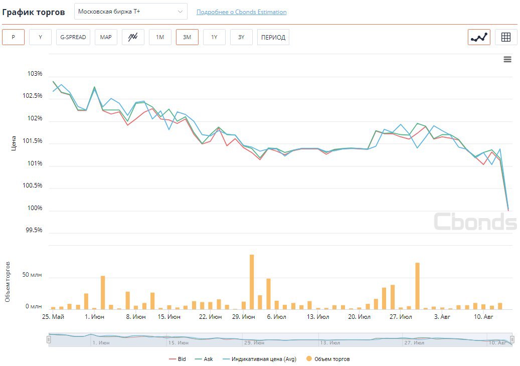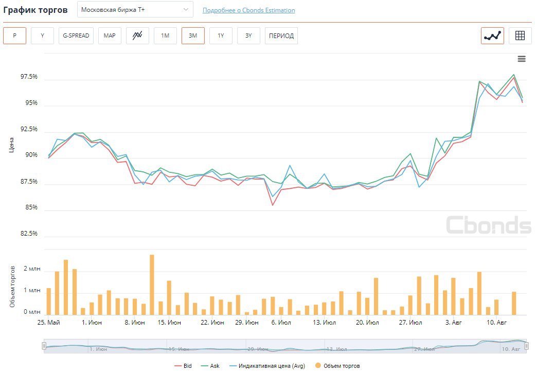 Суммарное падение каждого из выпусков относительно цен 10 августа составляется около 3%.