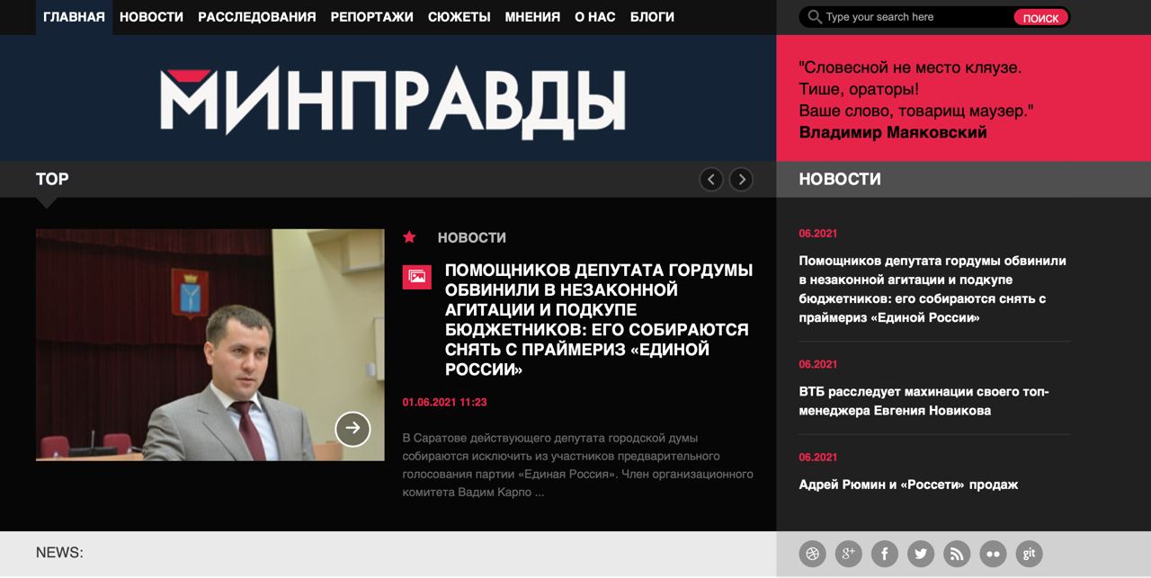 В интернете появился ресурс, который выдает себя за официальный сайт нашего телеграм-канала "Минправды". Дизайн логотипа сайта полностью скопирован, а вот в описании проекта значится следующее: