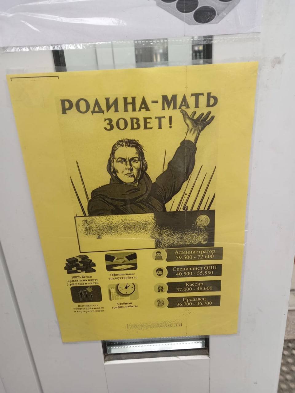 Прокуратура Чувашии организовала проверочные мероприятия по факту размещения перед помещениями различных магазинов торговой сети рекламы-объявления с изображением известного плаката, явно несоответствующего характеру рекламы и специфики деятельности объекта торговли.