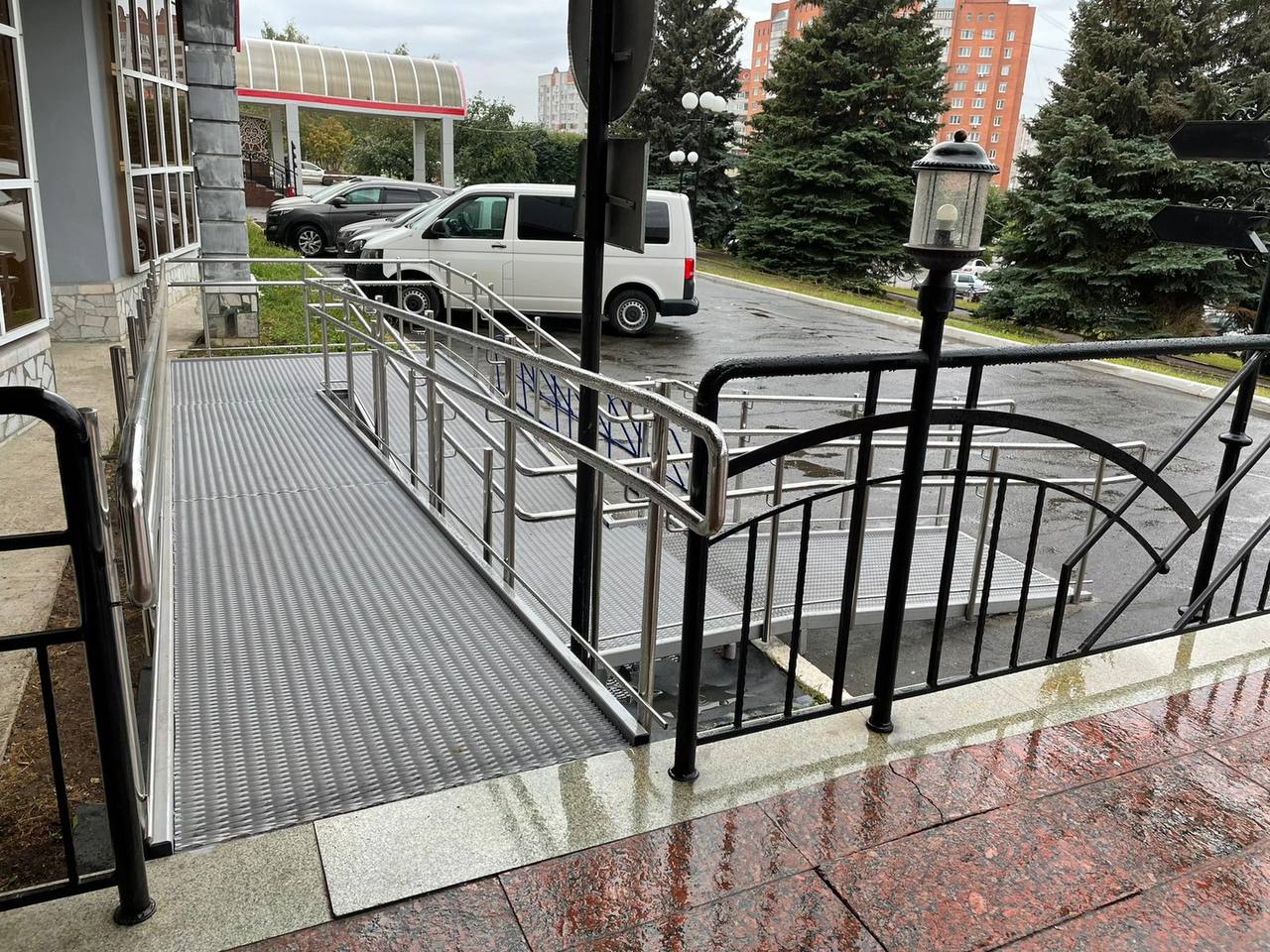 В рамках исполнения требований прокуратуры гостиницей заключен договор со специализированной организацией по установке пандуса и в настоящее время данные работы полностью завершены, необходимый пандус при входе установлен.