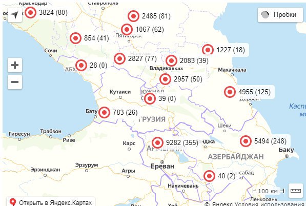 Напомним, что карта Юга России и Закавказья по состоянию с коронавирусом обновляется на Кавказском узле по нескольку раз в день, количество смертей больных коронавирусом по региону или закавказской стране можно узнать, нажав на цифры заболевших.
