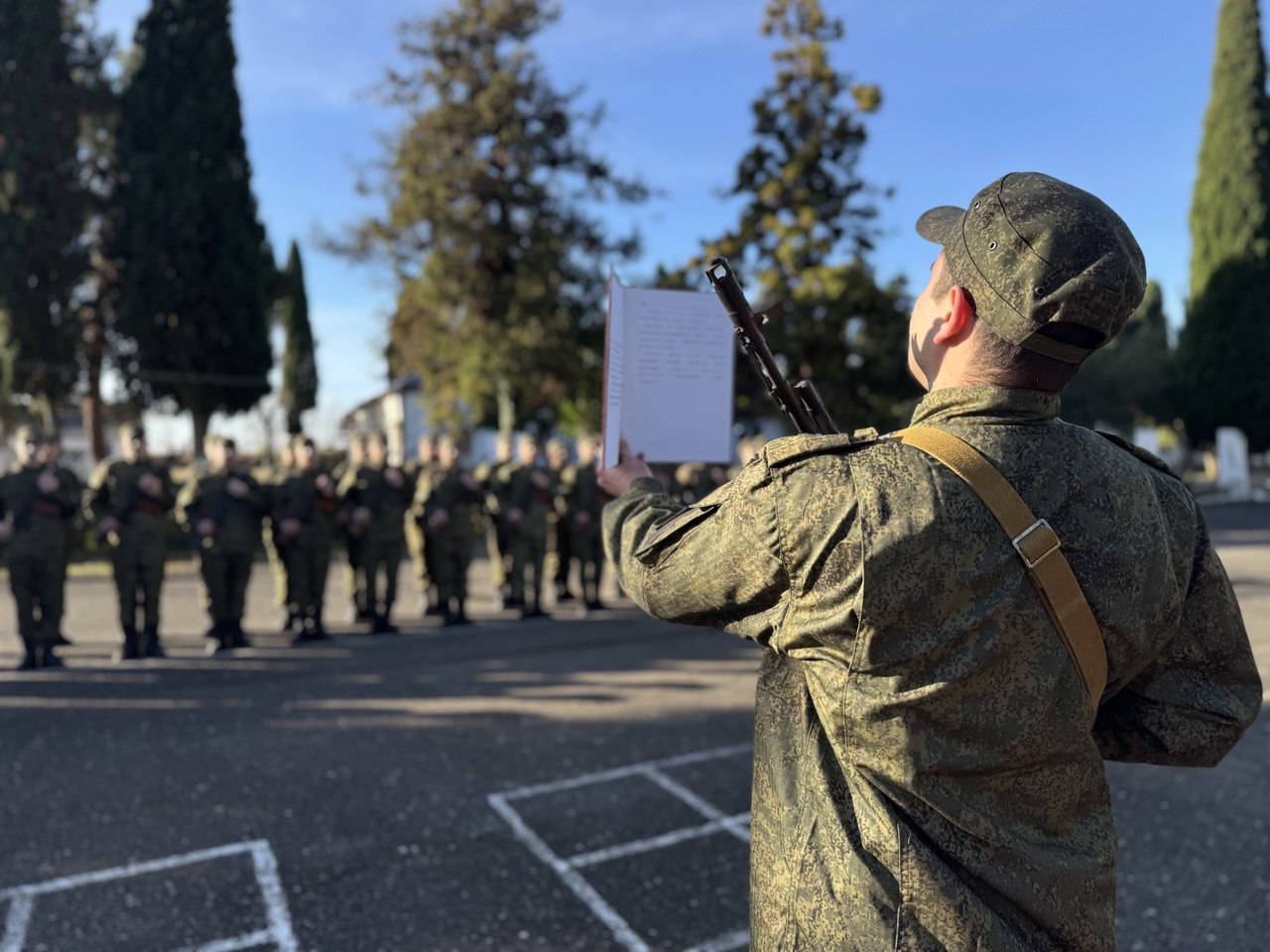 На строевом плацу воинской части под руководством заместителя председателя СГБ РА полковника Р.Латипова, заместителя начальника ПУ СГБ РА подполковника Д.Цвейба и всего офицерского состава, новобранцы зачитали текст военной присяги.
