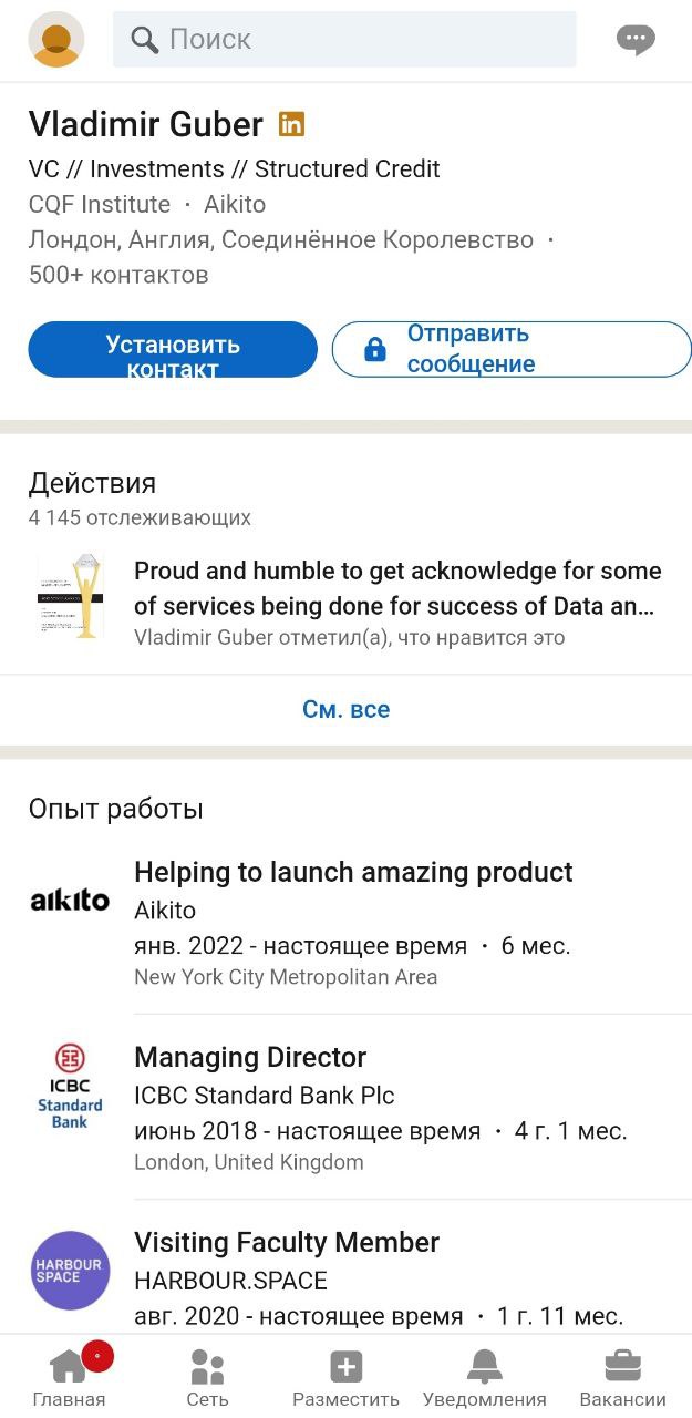 Судя по профилю в linkedin.com, Владимир Губер (названный свояк Рашида Темрезова, муж Марианы Губер-Гоговой) перебрался на запад на ПМЖ.