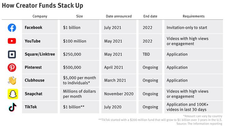 В связи со вчерашним анонсом программы выплат для создателей контента от Facebook и Instagram, пришло время обновить сравнительную таблицу всех фондов для креаторов.