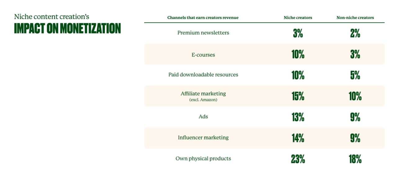 Из интересного: инфлюенс маркетинг в качестве источника заработка креаторы указывали реже, чем партнерский маркетинг или продажу собственных продуктов. 70% креаторов зарабатывают с рекламных интеграций менее 10% от всей выручки.