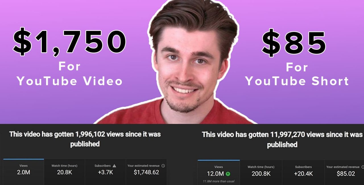 Ютубер Ludwig поделился статистикой заработка с коротких видео Youtube Shorts. На текущий момент результаты еще более печальные, чем у TikTok — всего около $0,007 за 1000 просмотров.