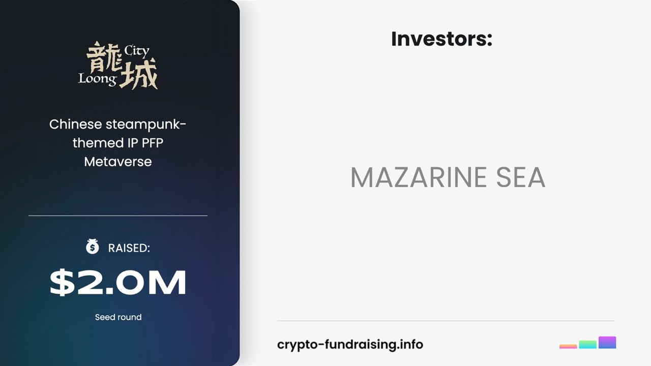 ββChinese steampunk-themed IP PFP Metaverse LoongCity raised $2M in a Seed funding round led by MAZARINE SEA.