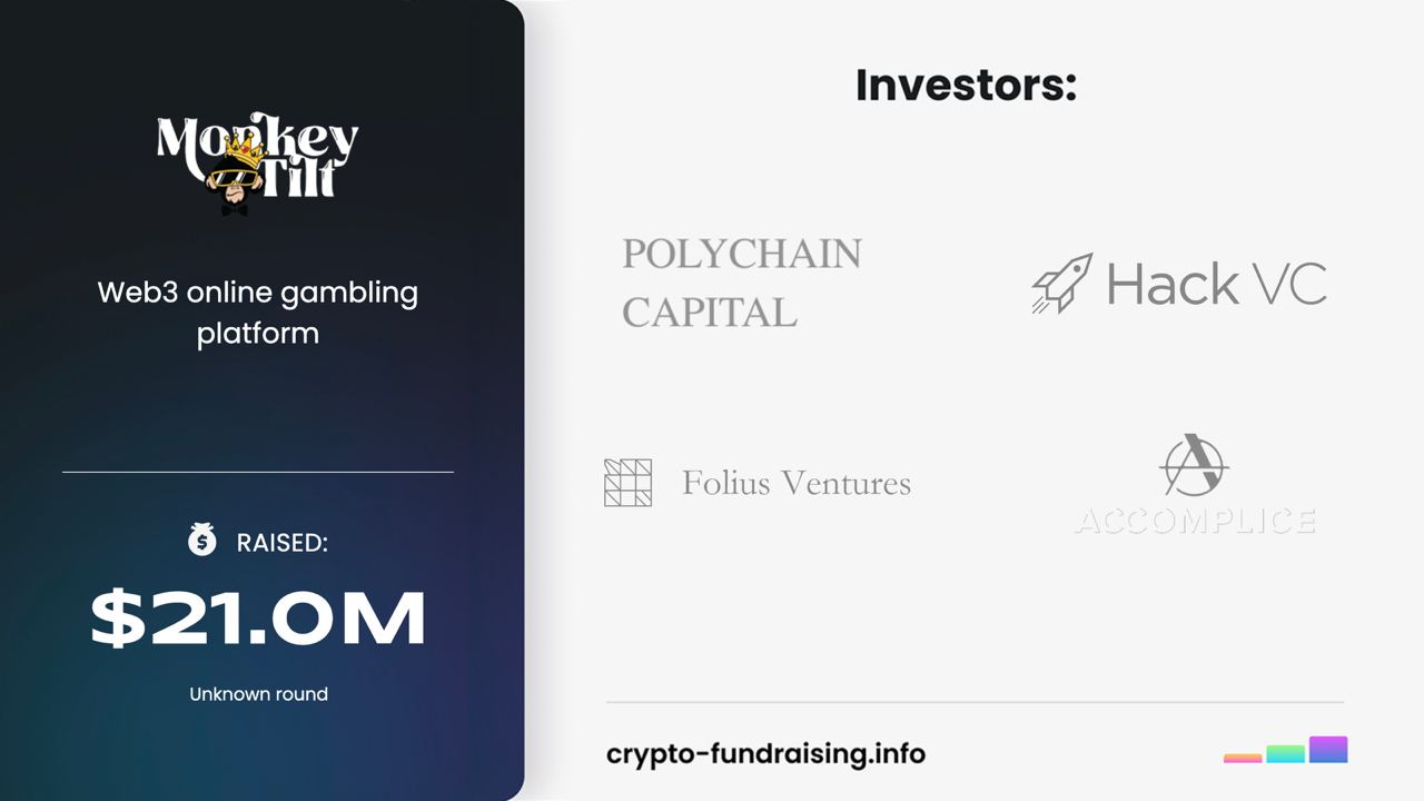 ββWeb3 online gambling platform Monkey Tilt raised $21M in a funding round from Polychain Capital, Hack VC, Paper Ventures, Folius Ventures, Accomplice Blockchain, PokerGO.