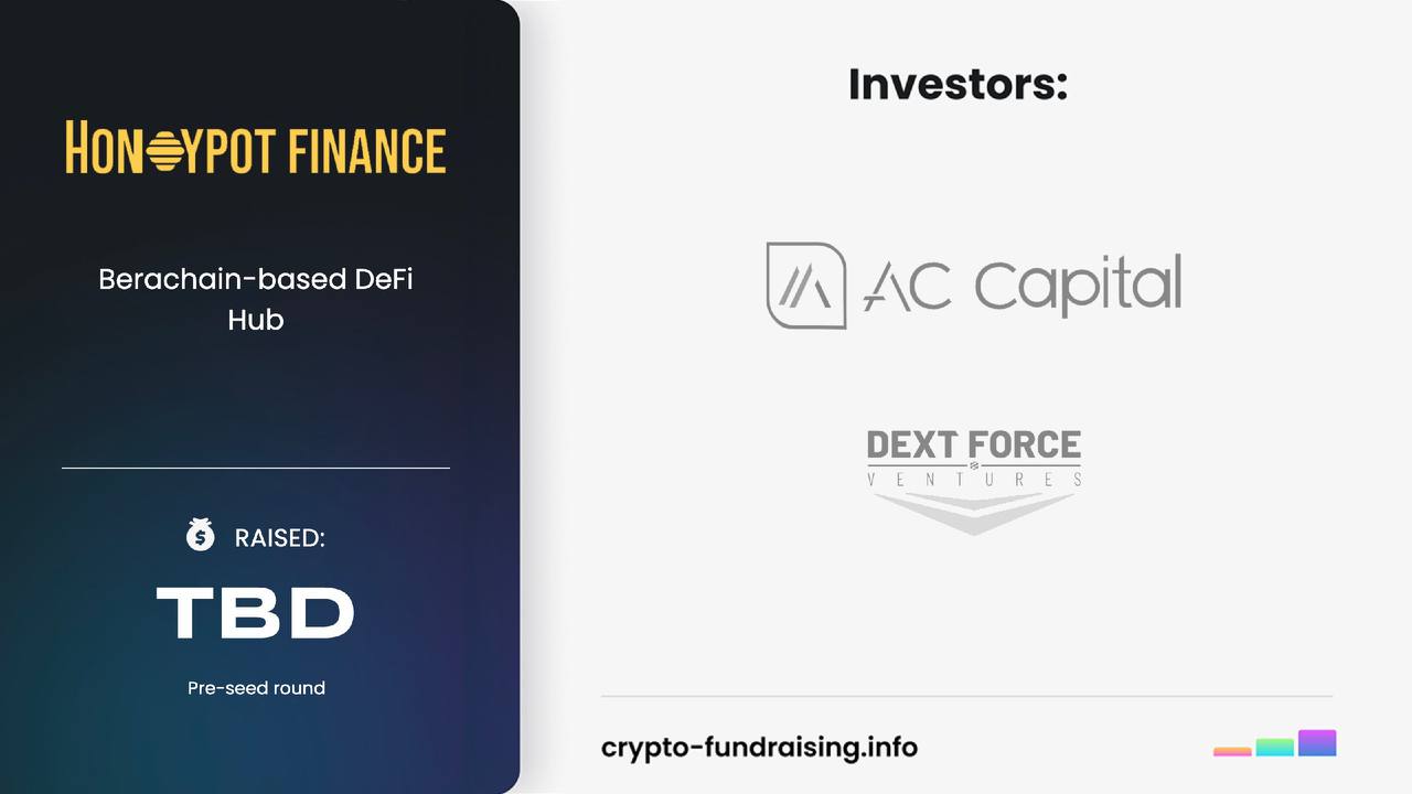 ββBerachain-based DeFi Hub Honeypot Finance closed Pre-seed funding round led by AC Capital, DEXT Force Ventures. Amount raised is not disclosed.