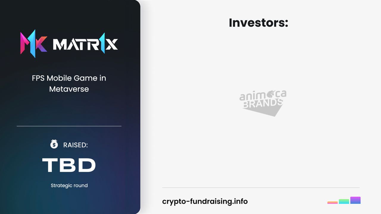 ββFPS Mobile Game in Metaverse Matr1x FIRE closed Strategic funding round led by Animoca Brands. Amount raised is not disclosed.