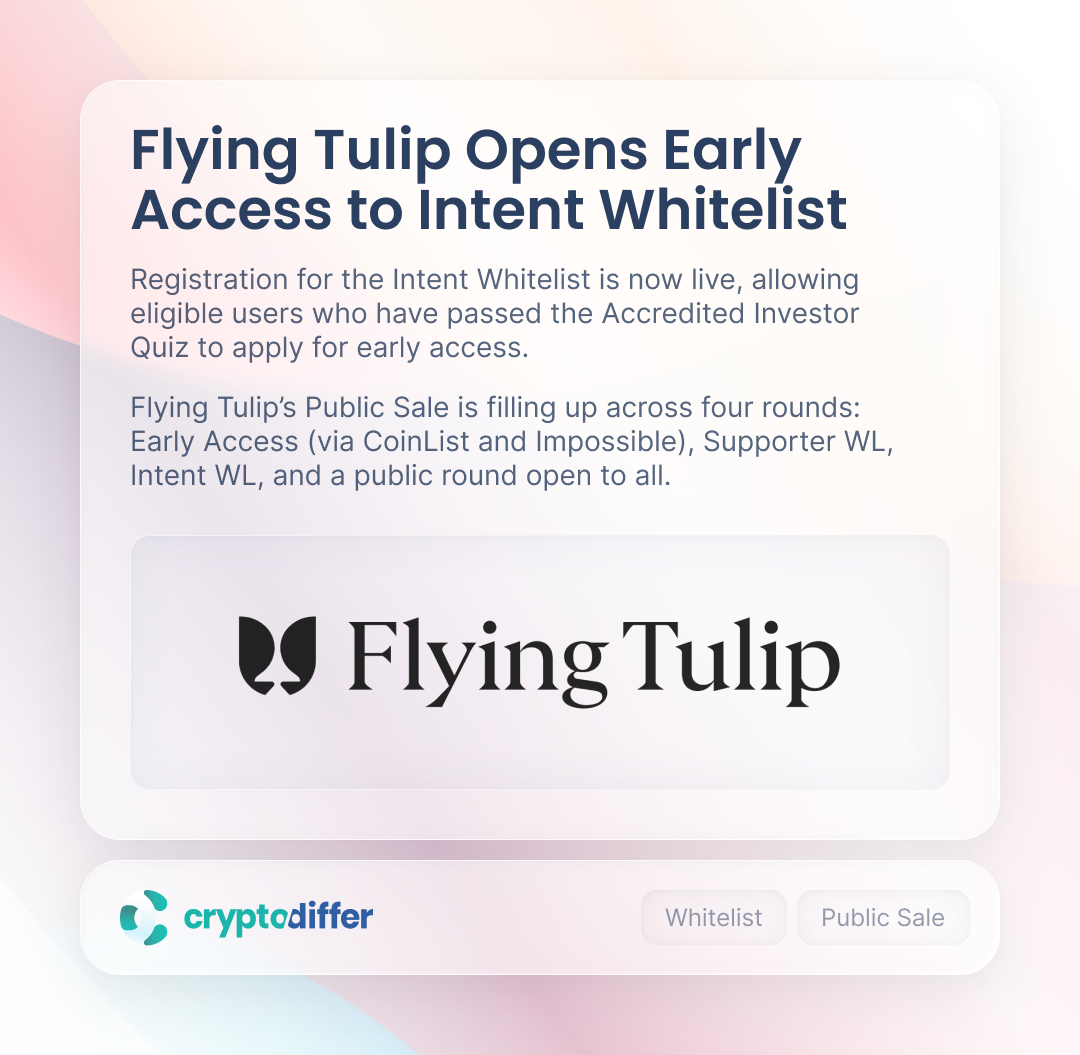 Flying Tulipβs Public Sale is filling up across four rounds: Early Access (via CoinList and Impossible), Supporter WL, Intent WL, and a public round open to all.