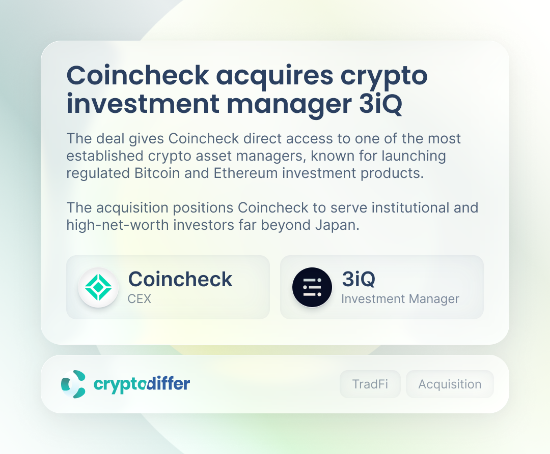 The deal gives Coincheck access to one of the most established crypto asset managers, known for launching regulated BTC and ETH investment products. The acquisition positions Coincheck to serve institutional and high-net-worth investors beyond Japan.