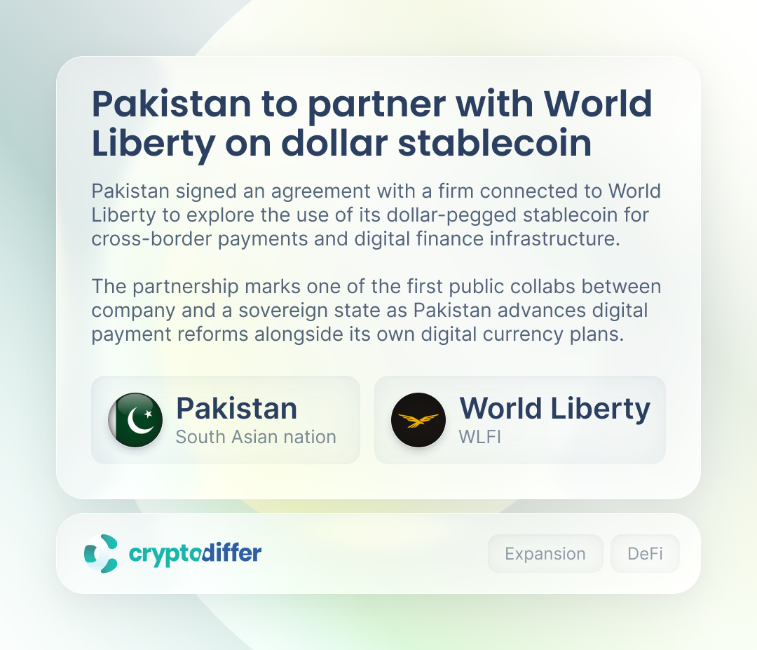 Pakistan has signed an agreement with a firm connected to World Liberty Financial to explore the use of its dollar-pegged stablecoin for regulated cross-border payments & digital finance infrastructure.