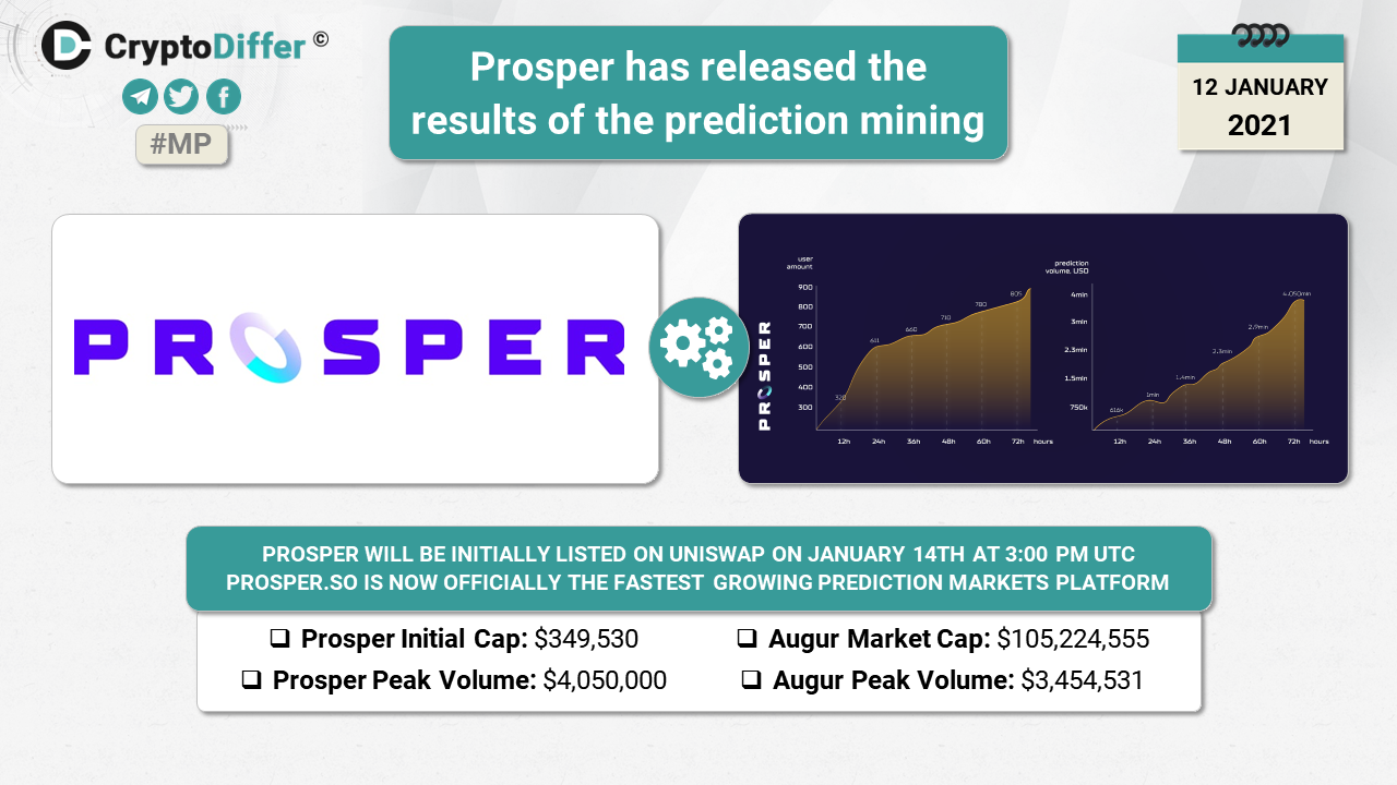 Prosper will be initially listed on Uniswap on January 14th, 3:00 PM UTC. The Token Price of the last round is $0.1 USD. Initial circulating supply is 3,891,300 PROS + Liquidity/Bridge tokens.