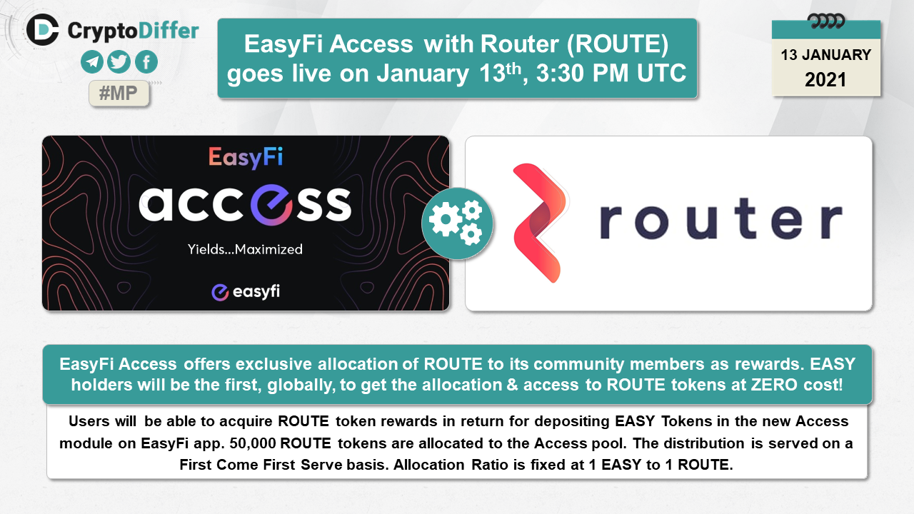 ββEasyFi Access with Router (ROUTE) goes live on January 13th, 3:30 PM UTC