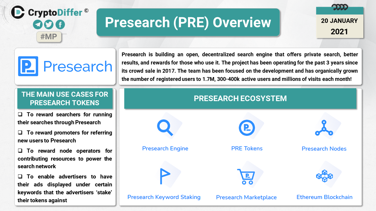 Overall, the Presearch team has done a lot of work building the platform. All 1.7M users came through their referral program, as they havenβt done any marketing yet. The team is aiming for 10M users in 2021.