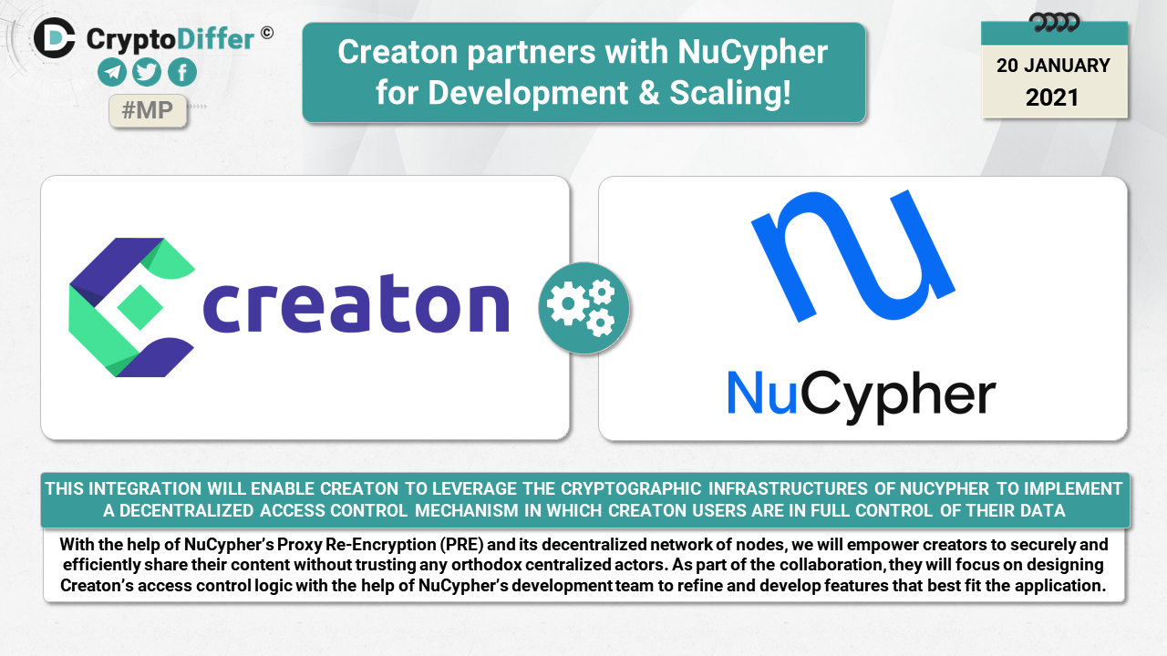 This integration will enable Creaton to leverage the cryptographic infrastructures of NuCypher to implement a decentralized access control mechanism in which Creaton users are in full control of their data.