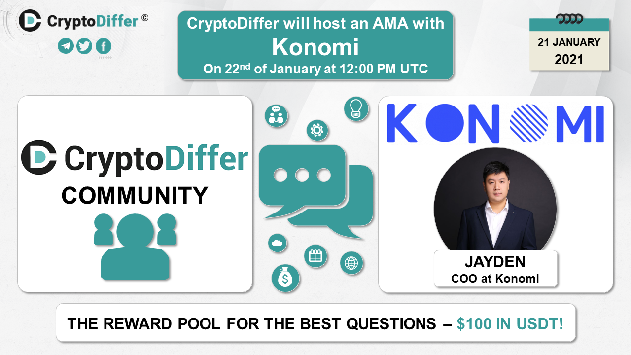 βββοΈDear community, CryptoDiffer will hold an AMA with Konomi on the 22nd of January at 12:00 PM UTC in the CryptoDiffer Telegram Chat!