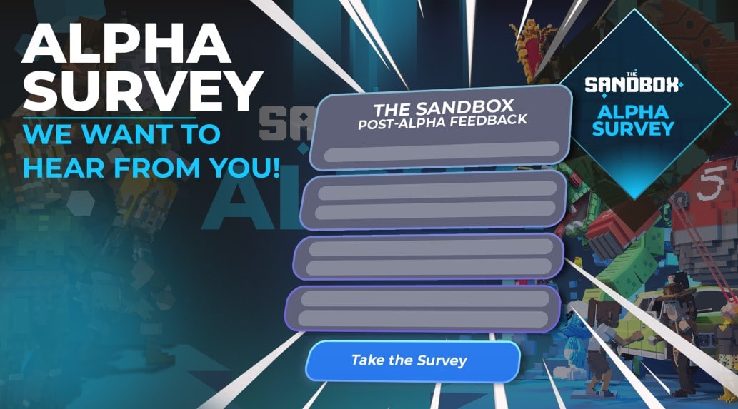 Работая над улучшением Метавселенной, разработчики игрового проекта Sandbox просят всех участников Альфы заполнить форму, чтобы услышать мнение об альфа-сезоне игры, что называется, из первых рук.