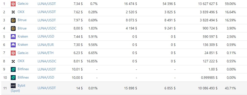 На сегодняшний день запуск второй версии LUNA поддержали следующие биржи: Binance, Huobi, Crypto.com, FTX, Bybit, OKX, KuCoin и другие.