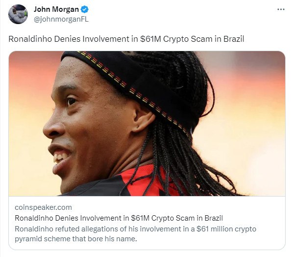 🙅♂️ Рональдиньо отрицает свою причастность к афере с криптой на сумму 61 млн долларов в Бразилии
