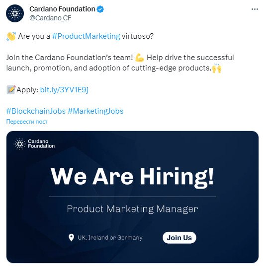 👨💼Cardano Foudation приглашает на работу продуктовых маркетологов