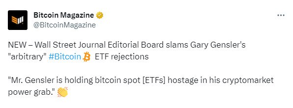 📰 Редакция Wall Street Journal осуждает "произвольные" отказы Гэри Генслера по заявкам на Bitcoin-ETF