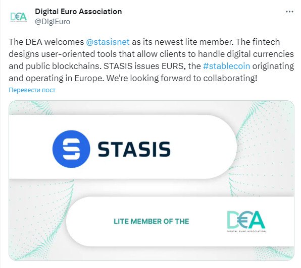 🤝 Эмитент EURS (стейблкоина, привязанного к физическому Евро), финтех-проект Stasis, стал участником Европейской Цифровой Ассоциации