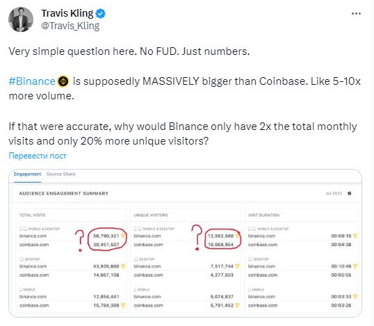 Если это правда, то почему у Binance всего в 2 раза больше ежемесячных посещений и только на 20% больше уникальных посетителей?"